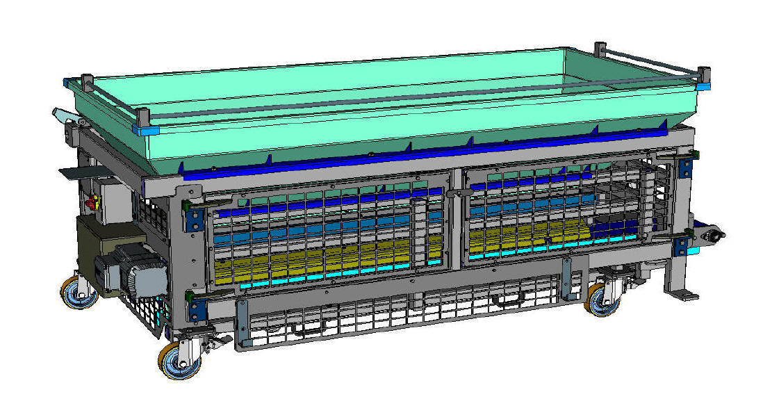 The construction is stainless steel comprising of a mixture of 304 and 316. It holds a mixed amount of dough, when instructed by the main machine it delivers a meted amount of dough to the conveyor under the unit and carries it to a vertical conveyor.